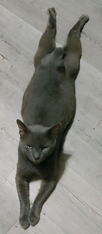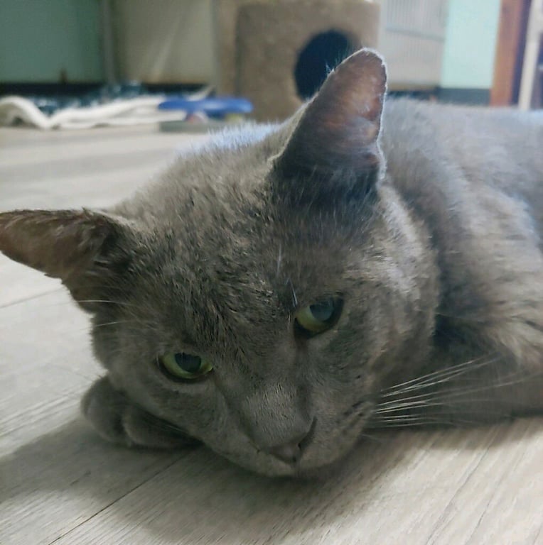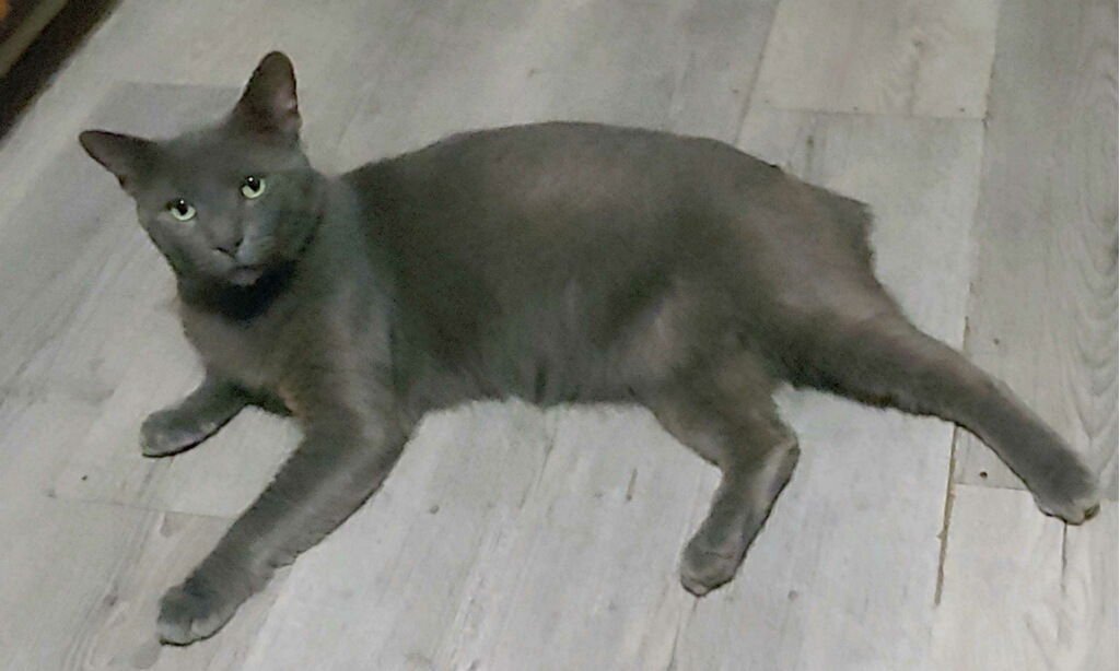 Shadow Blackstone is a adult male Russian Blue/Domestic Short Hair (large) available for adoption at Beyond Nine Cat Rescue in Oakland Park, FL.